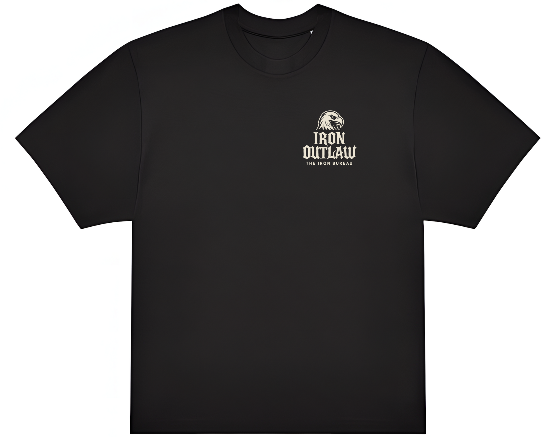 🦅 Vorn: Klassisches IRON OUTLAW Crest-Logo mit "The Iron Bureau"-Branding – für die, die dazugehören.