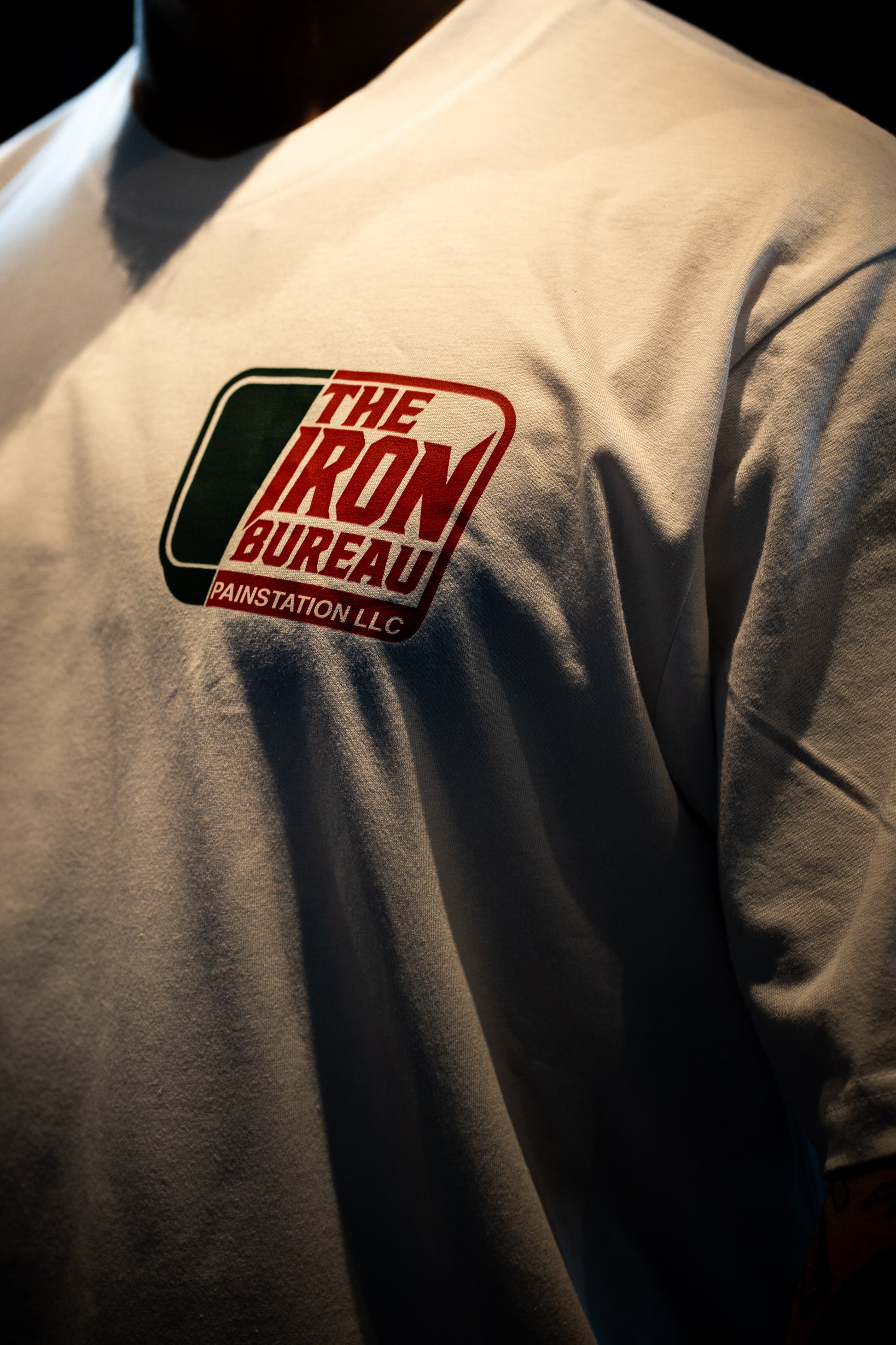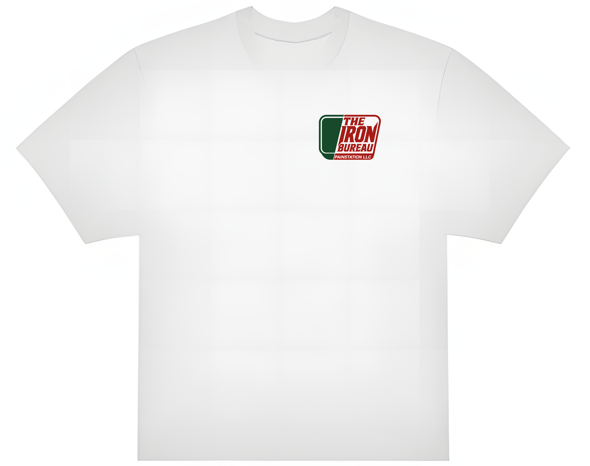 Druck vorne: Logo "The Iron Bureau – Painstation LLC"