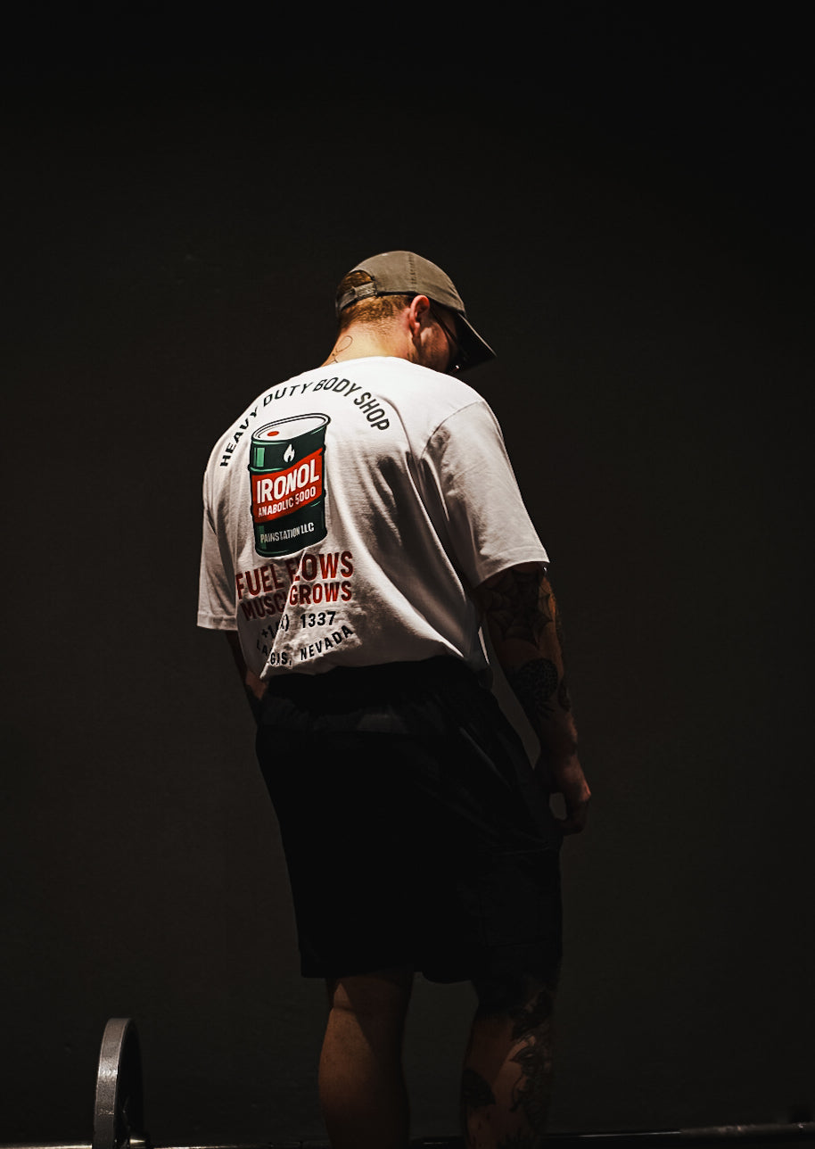 🛢️ Das kultige IRONOL-Fass-Design auf dem Rücken feuert deinen Bulk wie Benzin auf einen brennenden Motor.