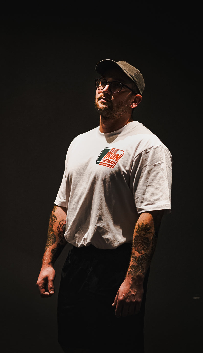 🏷️ Auf der Brust: das offizielle Iron Bureau -Logo – klinisch. krank. ikonisch.