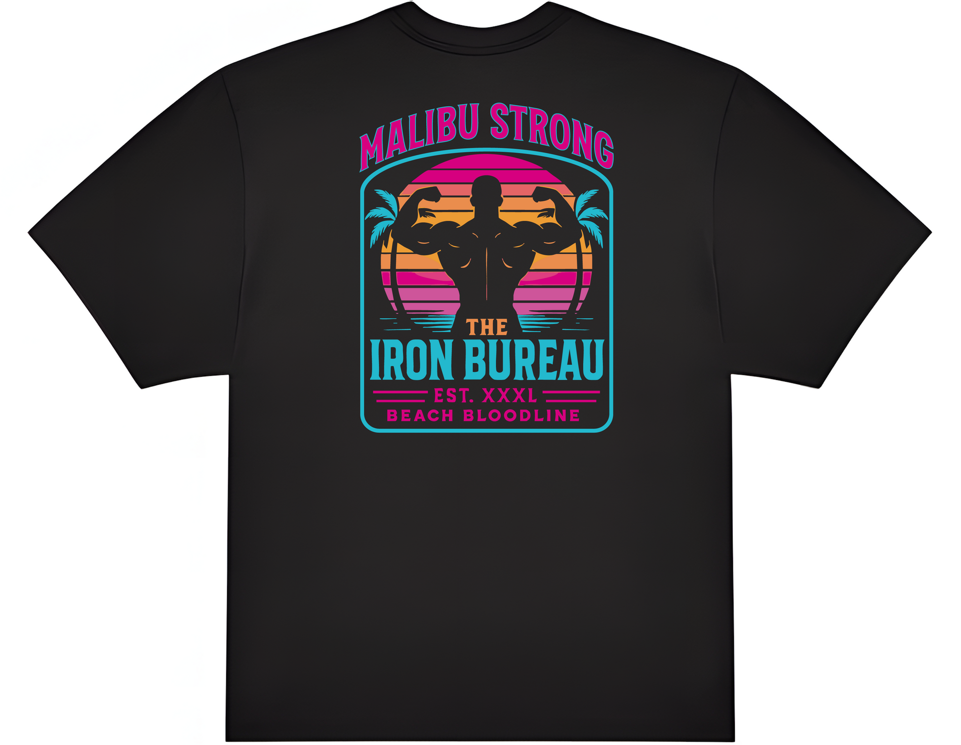 Dieses Shirt kombiniert den brutalen Spirit von The Iron Bureau mit einem kompromisslosen Neon-Retro-Design – inspiriert von den Stränden Malibus, geschaffen für die, die Eisen lieben.